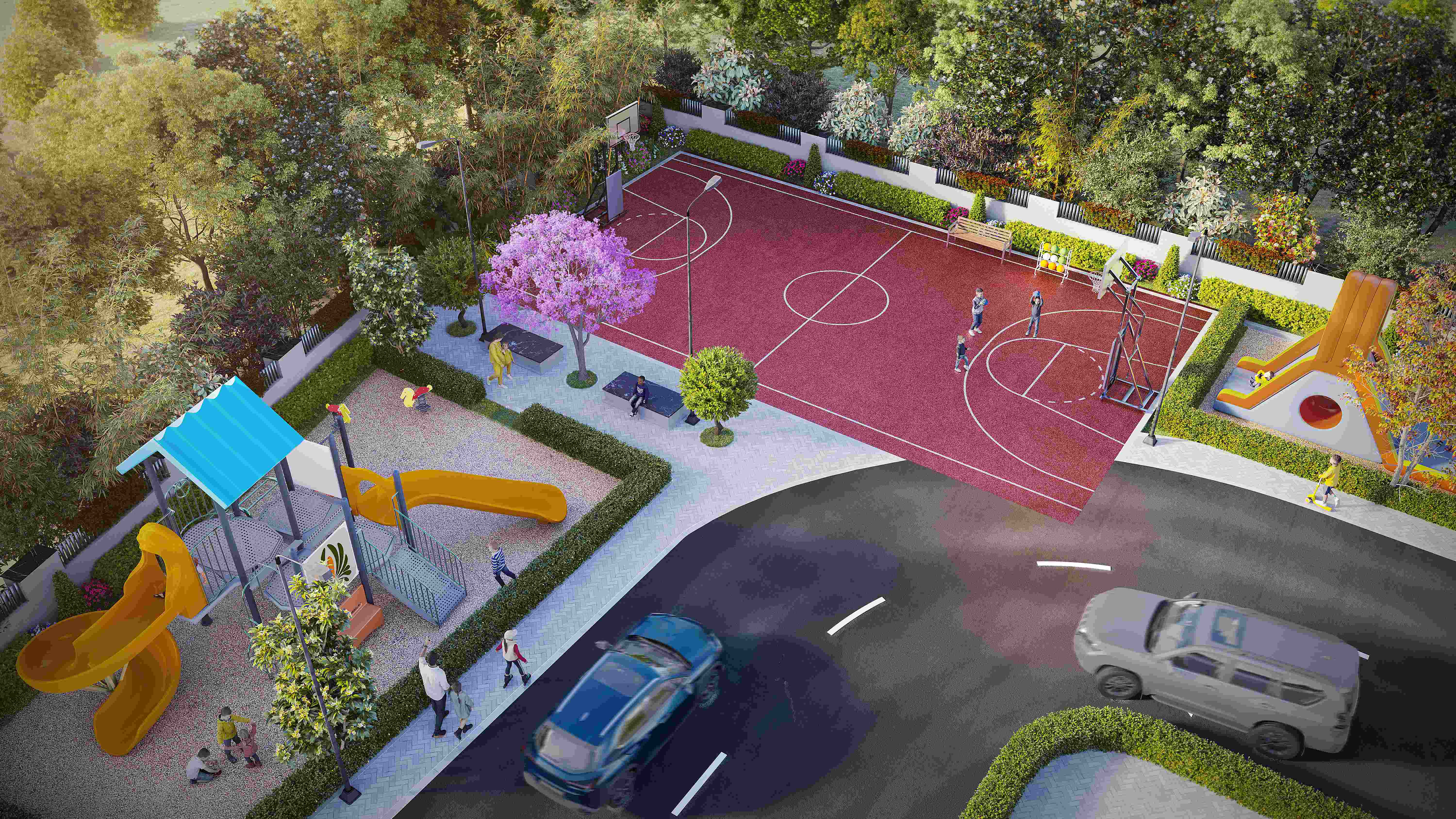 Amenities: At SSVR Meridian, there is a wide range of 25+ amenities, Indoor/Outdoor Sports Amenities, 75% Open spaces, central courtyard, Ev Charging provision, , children’s play area, tennis court, badminton court, squash court, cricket practice net, party hall, Adventure play area, Pavilion With Tree Court, yoga and aerobics deck,Solar Fencing.